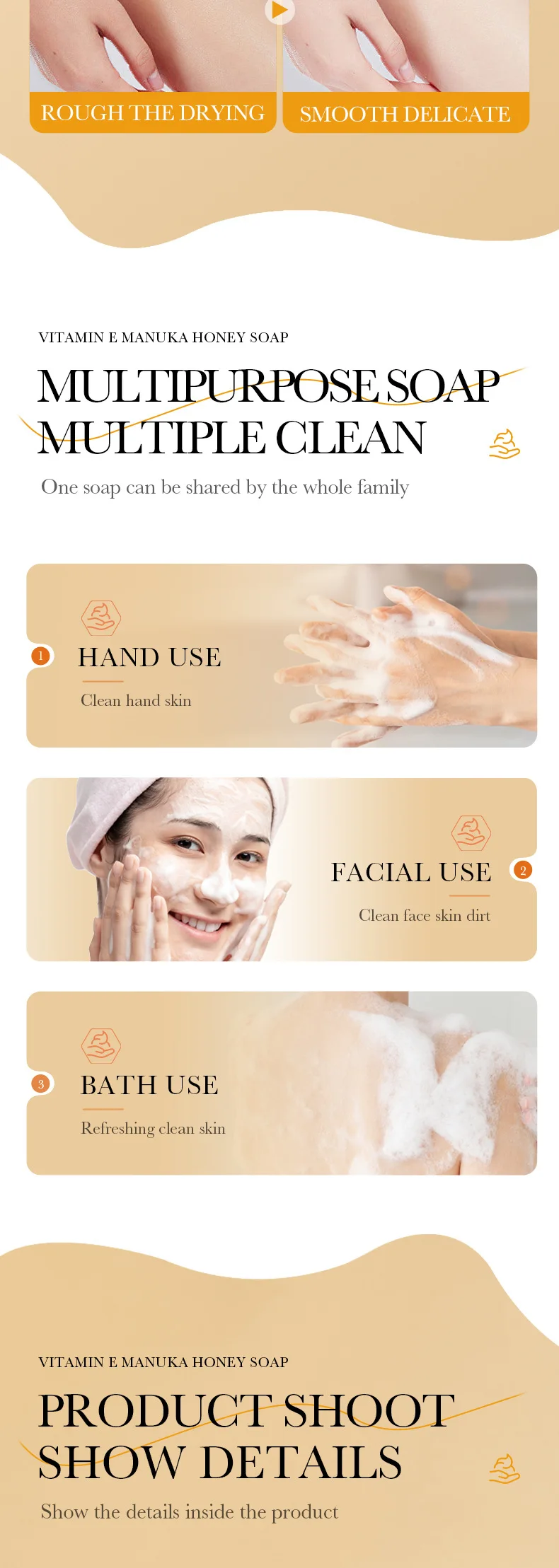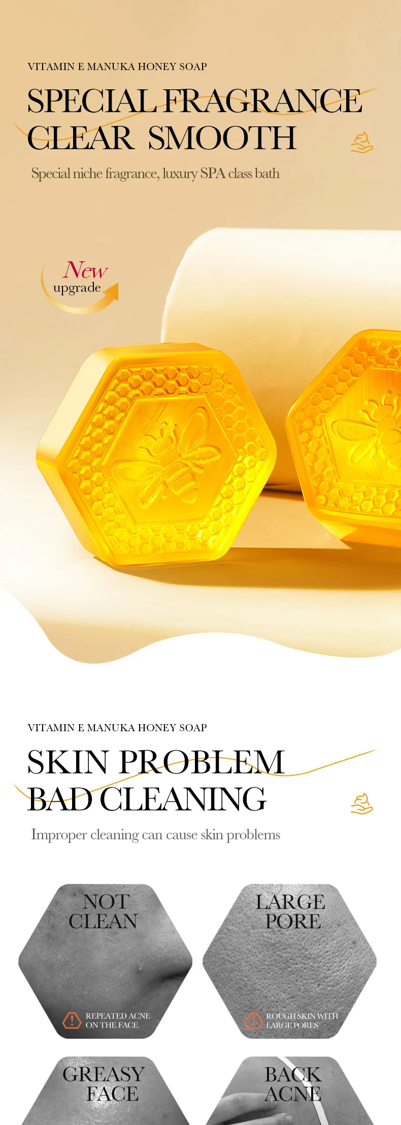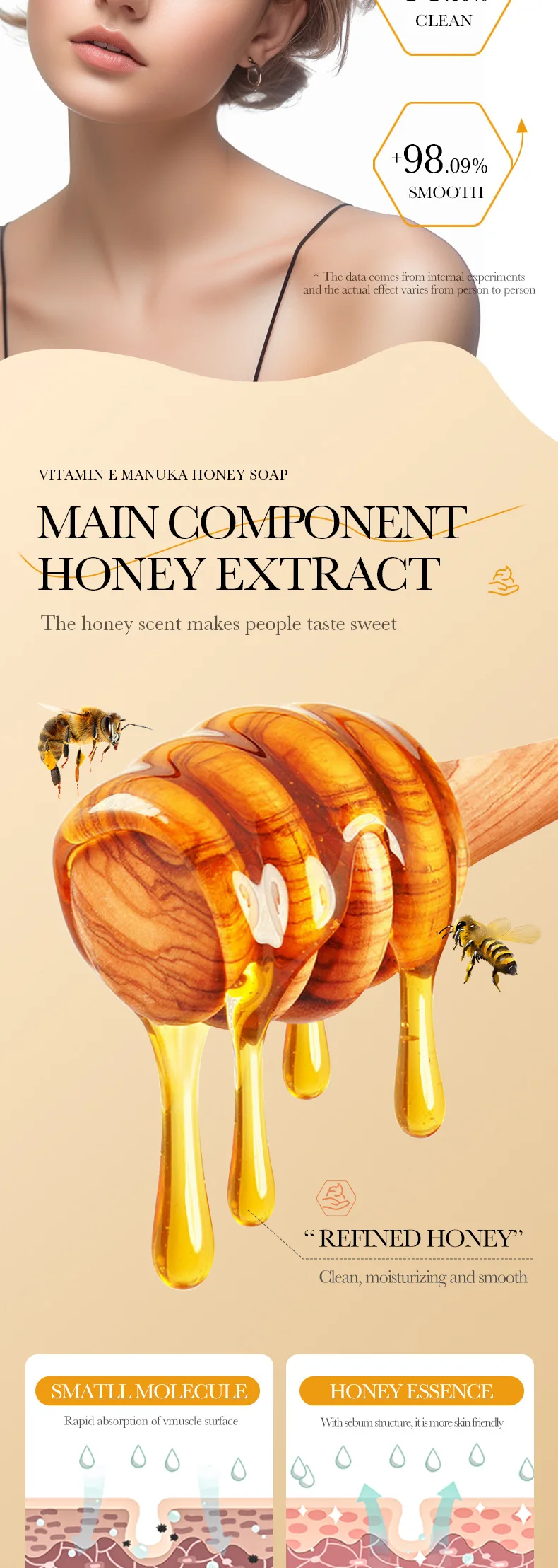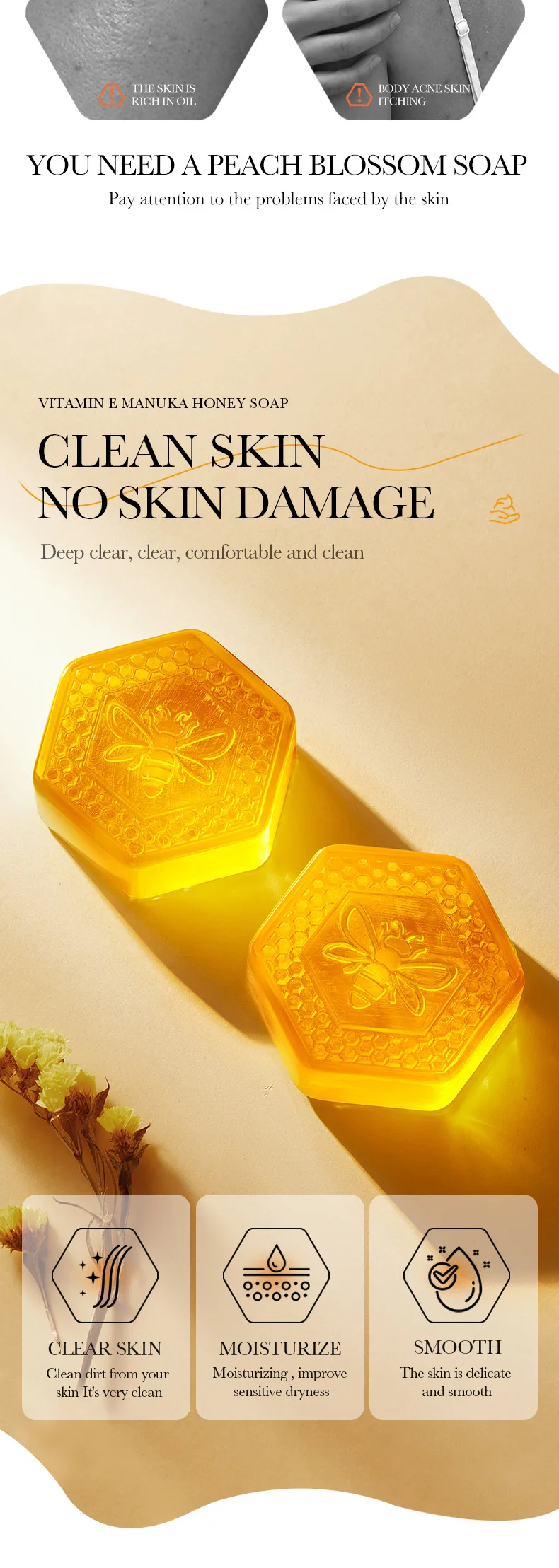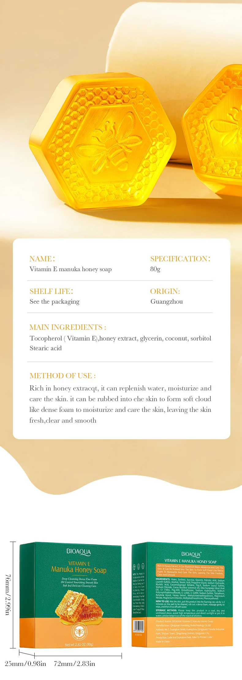 BIOAOUA Savon aux huiles essentielles au miel et à la vitamine E - Nettoyage doux pour le visage et le corps, Savon de bain parfumé hydratant et hydratant, Nat